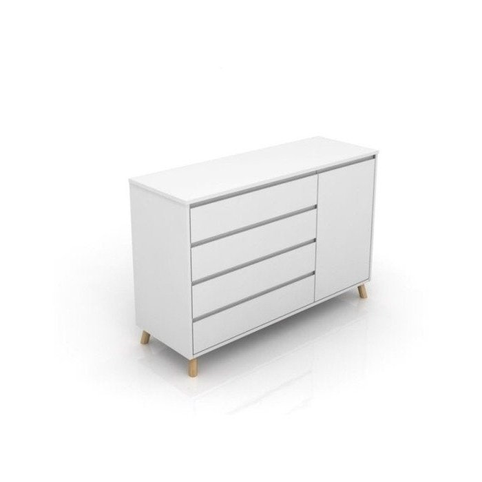 Cômoda 4 Gavetas e 1 Porta Studio Branco e Pés Carvalho - Quater