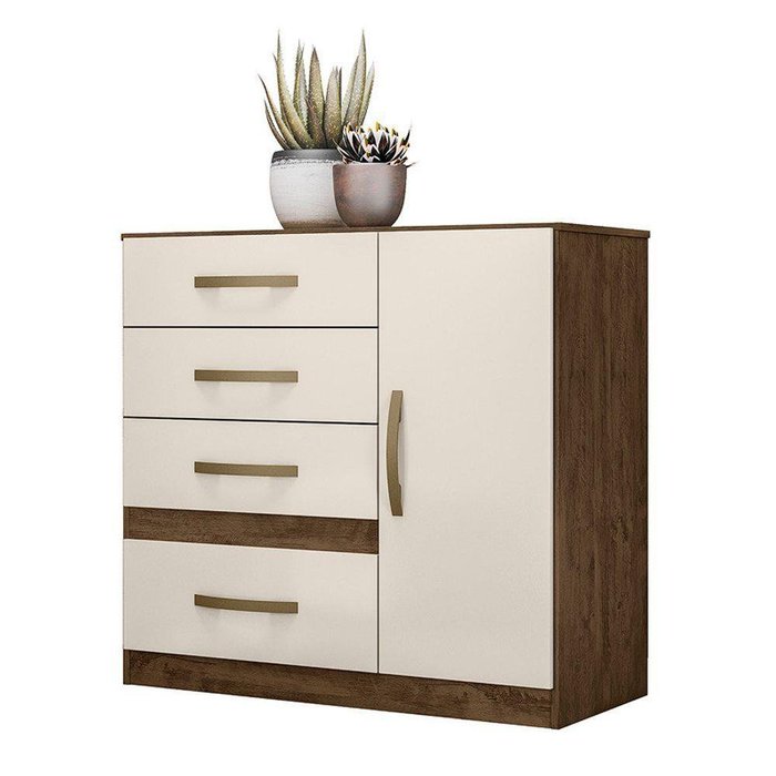 Cômoda 4 Gavetas E 1 Porta Vênus Castanho Wood Baunilha
