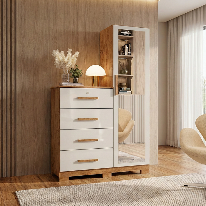 Cômoda 4 Gavetas e 1 Sapateira com Espelho