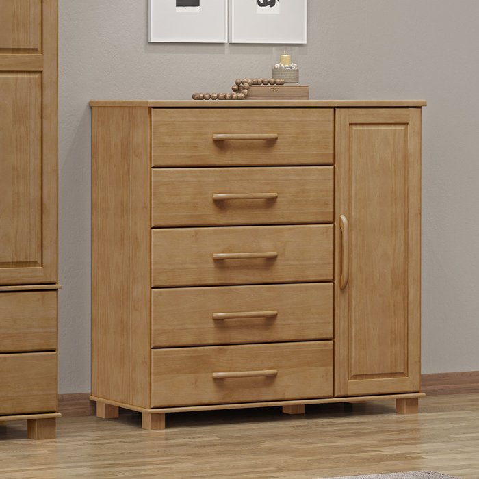 Cômoda 5 Gavetas 1 Porta 100% Madeira Maciça Linha Ouro Freijó