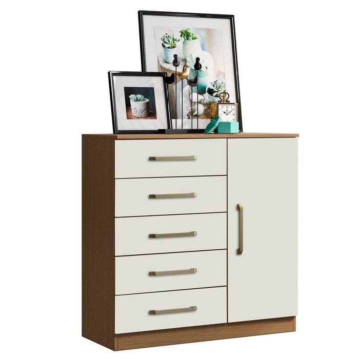 Cômoda 5 Gavetas 1 Porta Lily Atacama/off White Atacama/Off White