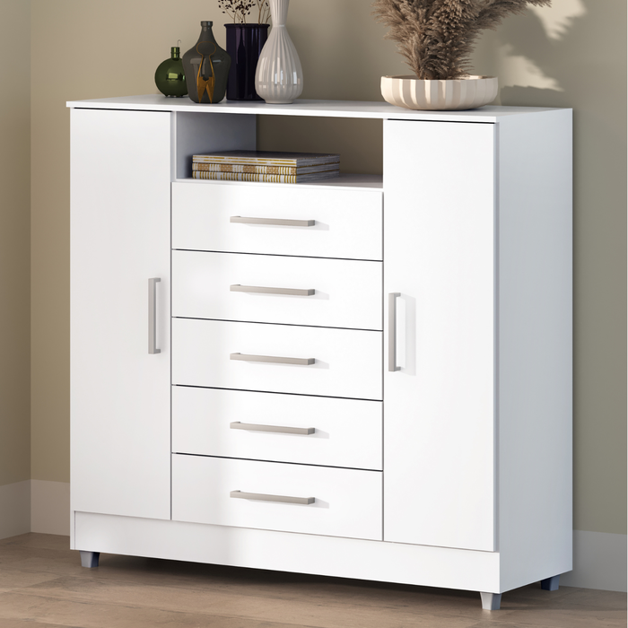 Comoda 5 Gavetas 2 Portas Branco Isabele