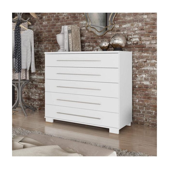 Cômoda 5 Gavetas Brilhante Móveis Robel Branco Madeirado