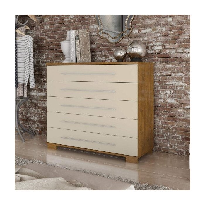 Cômoda 5 Gavetas Brilhante Móveis Robel Nature/Off White