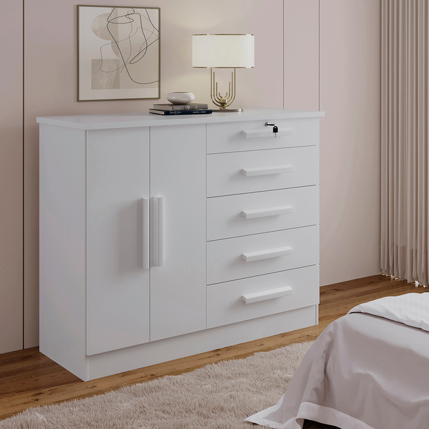 Cômoda 5 Gavetas e Chave Zeus Branco