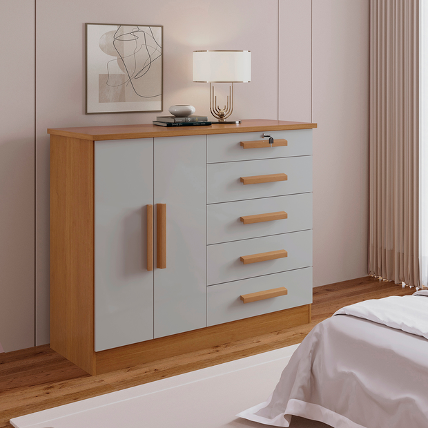 Cômoda 5 Gavetas e Chave Zeus Off-White/Cinamomo