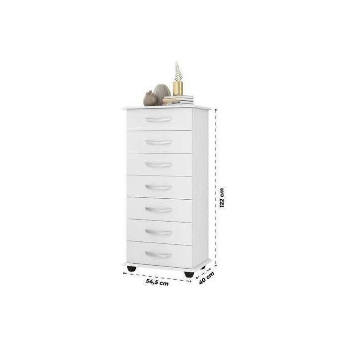 Cômoda com 7 GavetasO Melhor custo beneficio do mercado, procurando uma cômoda branca para o quarto do bebe ou das crianças? A cômoda Grécia é a ideal com várias gavetas que proporcionam uma incrível organização, sendo um modelo horizontal que ocupa menos espaço do quarto.Altura: 122 cmLargura: 54,5 cmProfundidade: 40 cm- Garantia de 3 meses contra defeito de fabricação.- Fotos meramente ilustrativas do produto no ambiente.- Os objetos que ambientam as fotos não acompanham o produto;- A limpeza deve ser feita com flanela ou pano macio seco, não utilizar produtos abrasivos, desengordurantes ou solvente. - Não expor o produto diretamente à luz solar e à umidade.* Sugerimos a contratação de um montador profissional para a montagem do produto. Não nos responsabilizamos por avarias causadas no ato da montagem.* Não nos responsabilizamos pela montagem e desmontagem do produto no ato da entrega e devolução, assim como os custos gerados nestas situações.* A transportadora entregará o produto no andar térreo do endereço de entrega.* Não nos responsabilizamos por subir escadas, corredores e elevadores ou transporte por guincho em apartamentos.