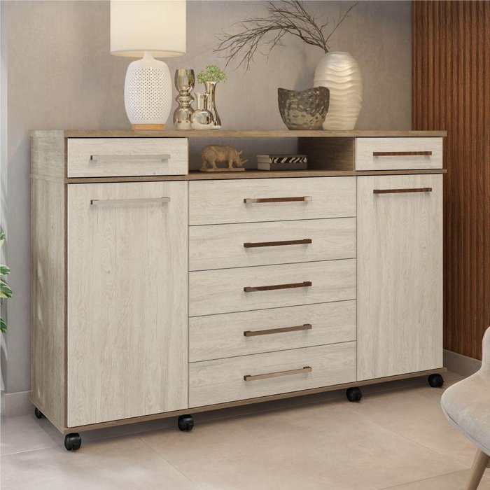 Essa cômoda é perfeita para quem procura um móvel robusto e com capacidade extrema de utilidade e organização, devido ao grande número de gavetas e compartimentos