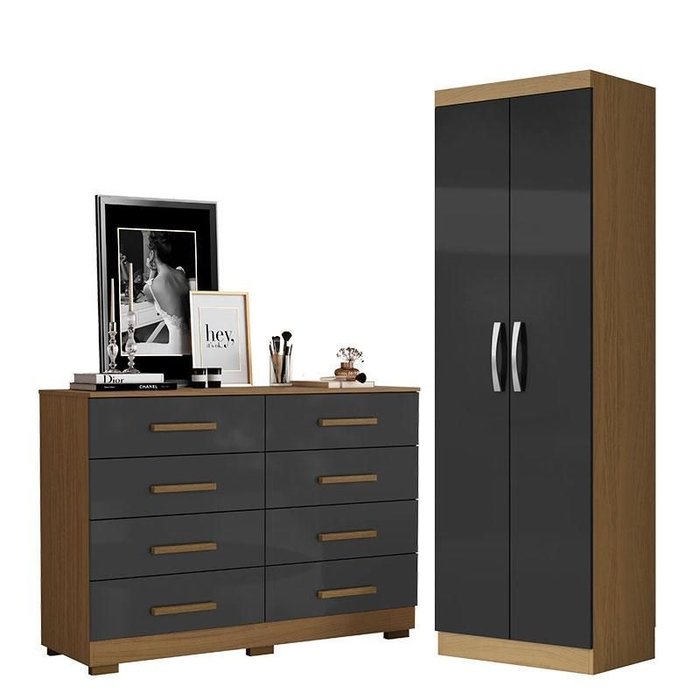 Cômoda 8 Gavetas 2014148 e Armário Multiuso New 2000192 Atacama Grafite - Aramóveis