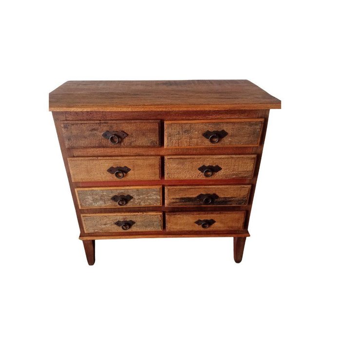 Uma cômoda pequena com 8 gavetas de madeira maciça de demolição é um móvel funcional e esteticamente atraente que oferece espaço de armazenamento compacto e um toque rústico, nas medidas de 80 Mt. Aqui estão alguns aspectos relevantes sobre esse tipo de móvel: 1. Tamanho Compacto: 2. Versatilidade em Espaços Pequenos: A mini cômoda é projetada para ocupar um espaço reduzido, tornando-a uma opção prática para quartos pequenos, corredores, salas de estar ou qualquer área que exija armazenamento adicional sem comprometer muito espaço.