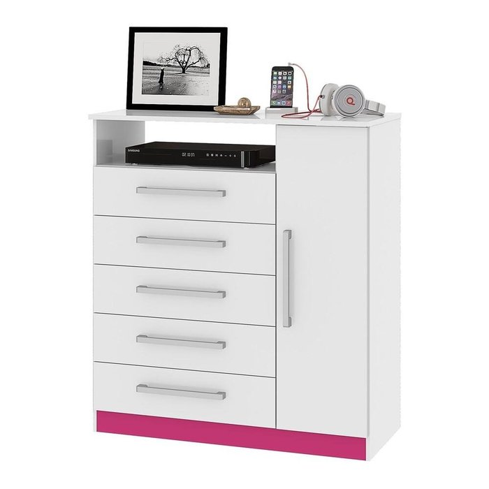 Cômoda 91cm 5 Gavetas 1 Porta Multimóveis CR35149 Branco/Rosa