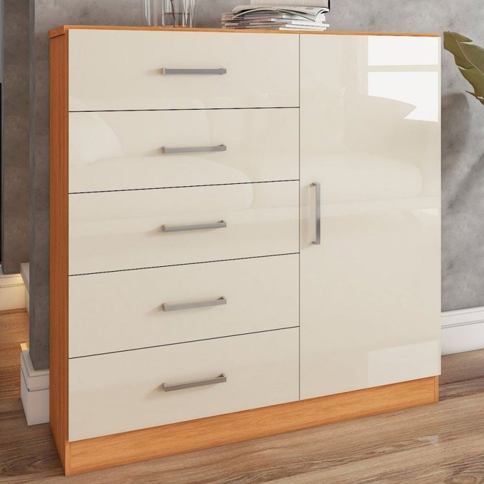 Cômoda Angra 5 Gavetas 1 Porta Cinamomo/off White - Panorama Móveis