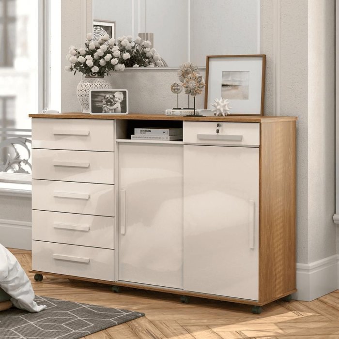 Transforme o seu quarto com a elegância e funcionalidade dessa Cômoda. Este móvel foi projetado para oferecer não apenas um espaço de armazenamento, mas também um toque de modernidade e estilo ao seu ambiente. Com um design sofisticado e detalhes que encantam, a cômoda é a escolha perfeita para quem busca qualidade e beleza em um único produto. Dimensões do produto montado: