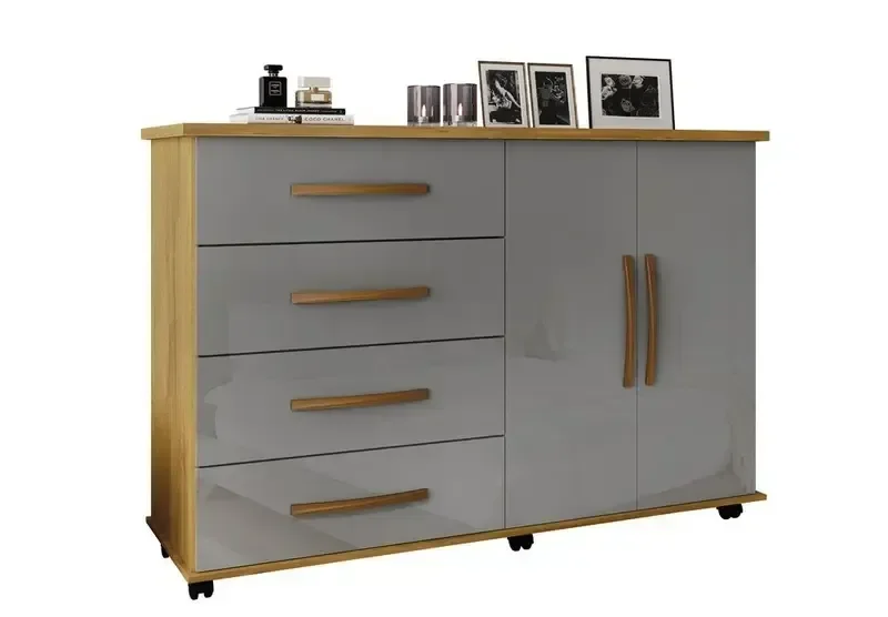 Cômoda Bali 4 Gavetas 2 Portas com Rodinhas Cinza Mel