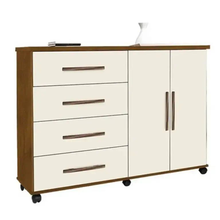 Cômoda Bali 4 Gavetas 2 Portas com Rodínhas Mel Perola