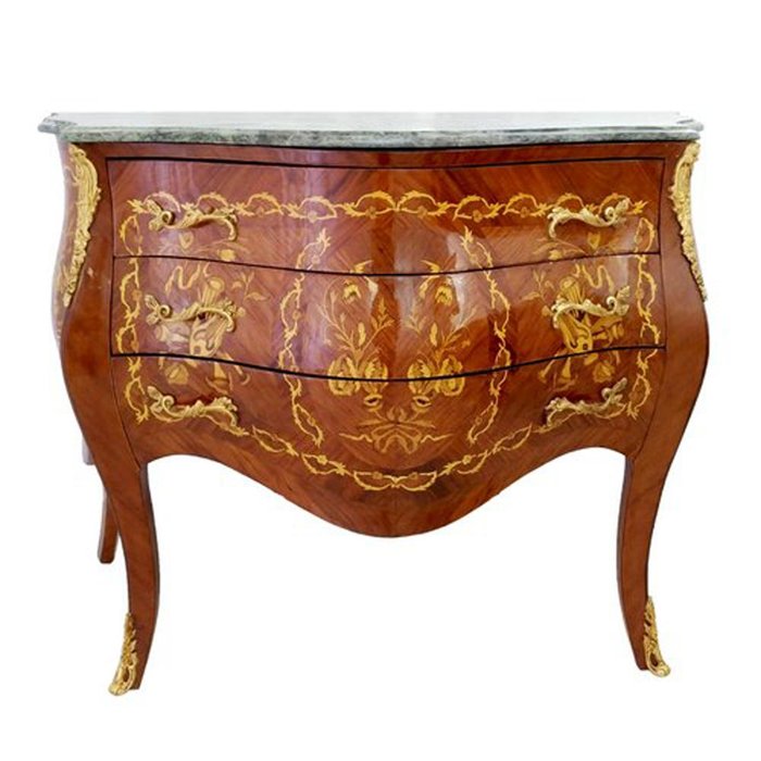 Cômoda Bombê Luis XV Maquiterri 3 Gavetas Tampo em Mármore