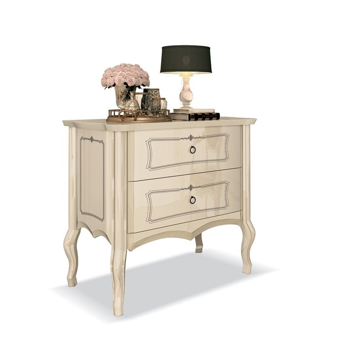Cômoda Bombe Retrô Pé Madeira 2 Gavetas Império:offwhite