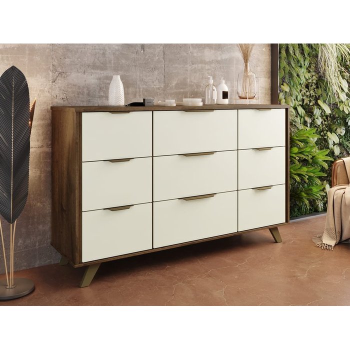 Cômoda Buffet 9 Gavetas - Olimpia-Braúna/Off White- Móveis Europa
