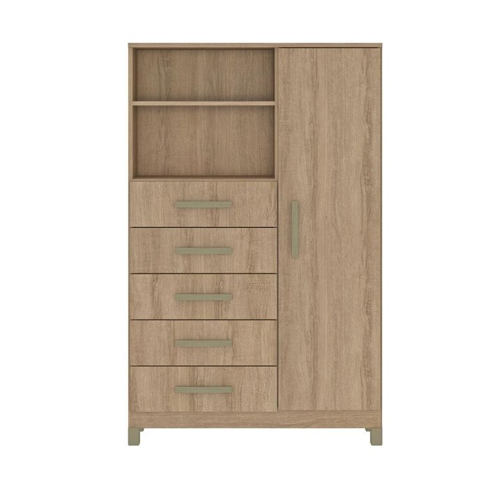 Cômoda Cancun 1 Porta 5 Gavetas Com Nichos e Pés Mel Mel
