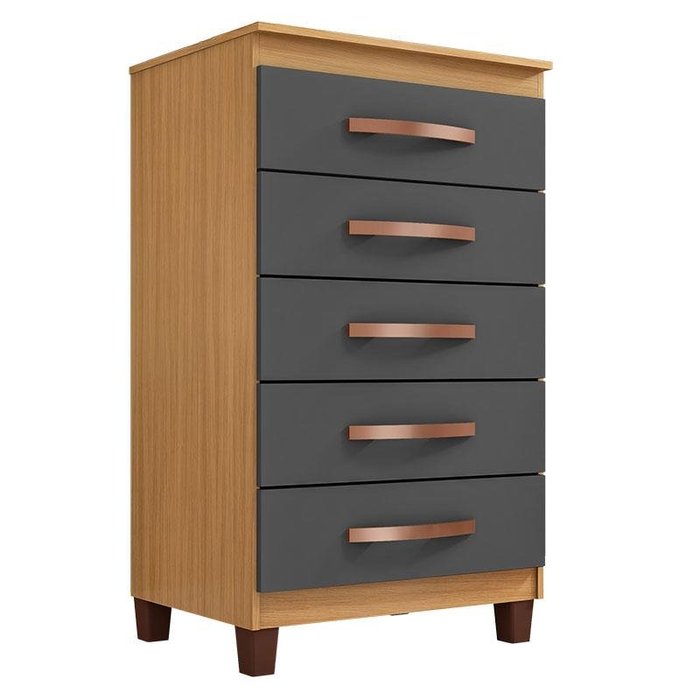 Cômoda Cannes 5 Gavetas Carvalho Americano Grafite - Incorplac