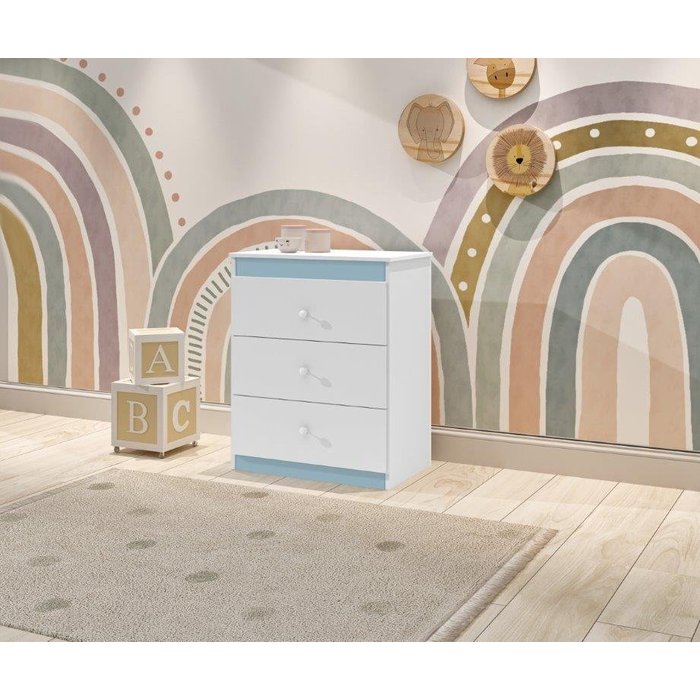 Cômoda CAT Linha Infantil 3 Gavetas Com Puxadores Cromados Cor Branco/Azul JA