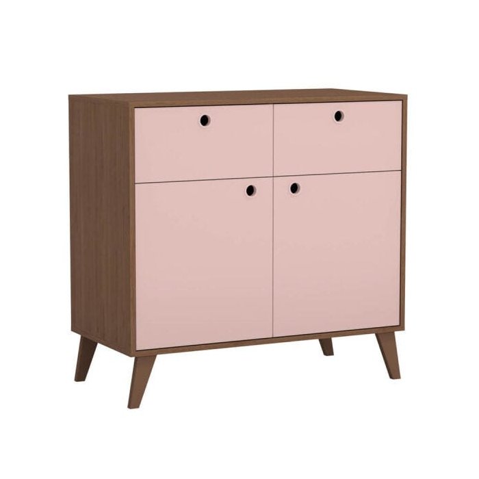 Cômoda Clássica com 2 Gavetas 100% Mdf Carvalho Avelã / Rosa Premium