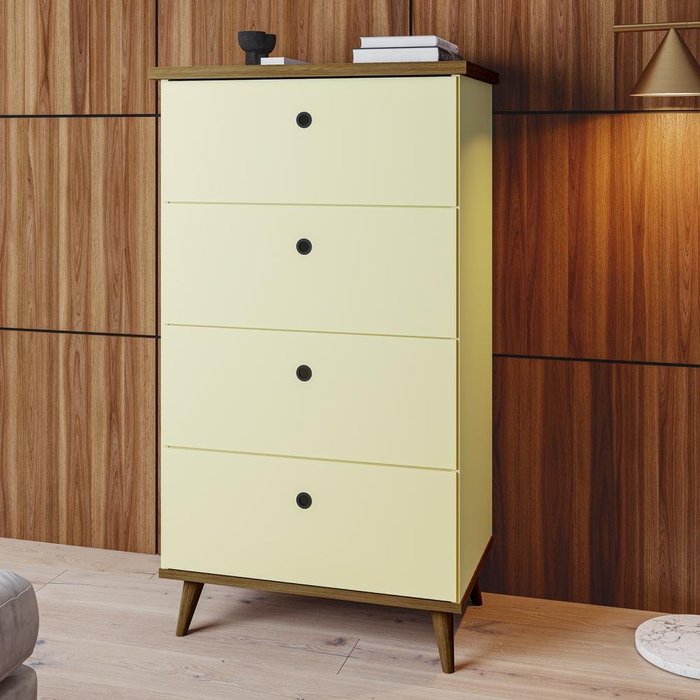 Cômoda com 4 Gavetas Retrô Lottus - Pérola com Freijó - Móveis Primus