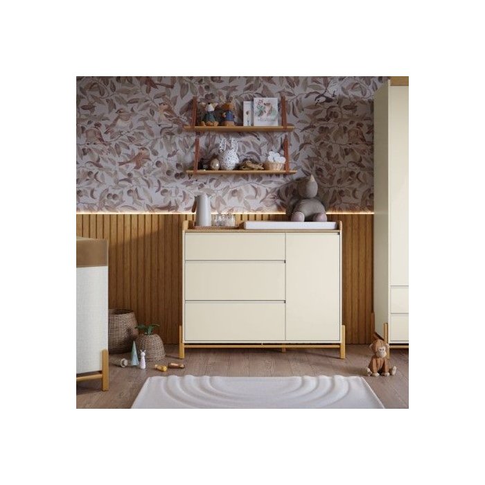 Cômoda com Porta e 3 Gavetas Tess Clean Off White/freijó Eco Wood Matic Off White/freijó