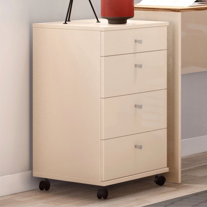Este Gaveteiro é perfeito para deixar o ambiente mais organizado. Conta com 4 gavetas com corrediças metálicas, puxadores externos. Possui 4 rodízios, para facilitar na locomoção e pintura U.V. Elaborado em MDF/MDP. Dimensões do Produto: Altura: 69,5 cm Largura: 40 cm Profundidade: 40,5 cm Informações do Produto: Material: MDF/MDP Gavetas: Sim (4) Rodízios: Sim (4) Cor: Off White Itens Inclusos: 01 Gaveteiro. Kit completo para montagem e manual de instruções. Garantia: 3 meses contra defeito de fabricação. Informações complementares: - Fotos meramente ilustrativas do produto no ambiente. - Os objetos que ambientam as fotos não acompanham o produto; - Verificar descrição e tamanho do produto antes da compra. - Avaliar a mercadoria no ato do recebimento e recusar em caso de divergência ou avarias. - Mantenha as informações de contato e endereço de entrega atualizados para entrarmos em contato caso necessário. - Limpar com flanela ou pano macio seco, não utilizar produtos abrasivos, desengordurantes, álcool ou solvente. Não expor o produto diretamente à luz solar e à umidade. * Sugerimos a contratação de um montador profissional para a montagem do produto. Não nos responsabilizamos por avarias causadas no ato da montagem. * Não nos responsabilizamos pela montagem e desmontagem do produto no ato da entrega e devolução, assim como os custos gerados nestas situações. * A transportadora entregará o produto no andar térreo do endereço de entrega. * Não nos responsabilizamos por subir escadas, corredores e elevadores ou transporte por guincho em apartamentos.