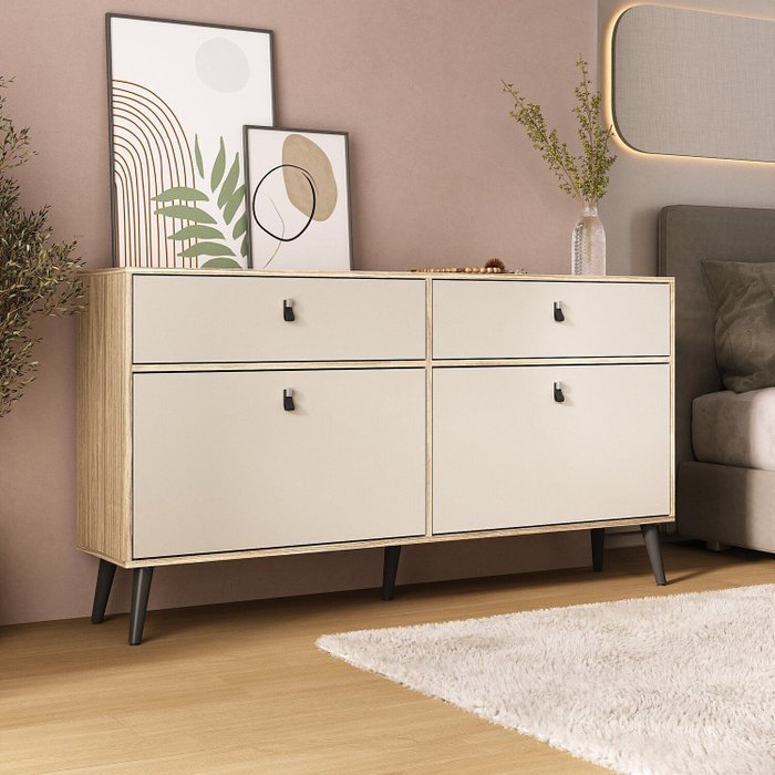 Cômoda com Sapateira Dupla e Duas Gavetas Amendoa / off white