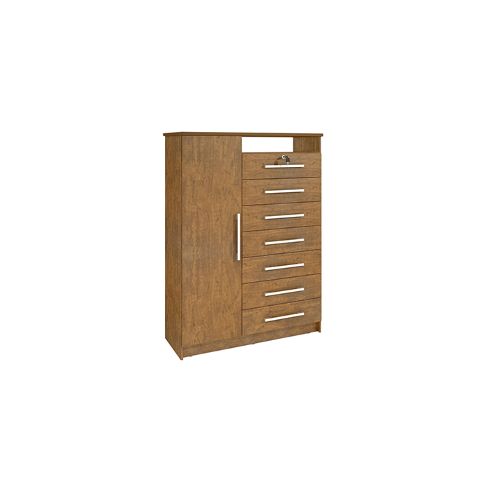 Cômoda com Sapateira Safira - 7 Gavetas - Cor Ypê D'Doro Móveis Para um quarto bem organizado sem roupas e calçados espalhados, a Cômoda Com Sapateira Safira é ideal! Produzida com material 100% em MDF, conta com sete amplas Gavetas sendo a primeira com chave e 5 prateleiras que podem ser usadas como sapateira e ou multiuso. Resistente e moderna, ainda tem espaço para TV e vídeo. Dimensões: - Altura: 160cm - Altura com pés: 170cm - Largura: 120cm - Profundidade: 45cm Características: - Produto: Cômoda Safira - Marca: D?Doro - Estrutura em chapas de MDP de 15 e 25mm - Portas e frente das gavetas em MDF - Tampo em MDF de 25mm - 01 porta lateral, com 05 prateleiras internas - 07 Gavetas, sendo uma com chave - Gavetas com corrediças telescópicas de 40CM - Gavetas com profundidade de 40cm - Gavetas com abertura total - Produto com 3 meses de Garantia Imagens meramente ilustrativas e as cores podem sofrer alterações dependendo do monitor. Não nos responsabilizamos pela montagem do produto. É de responsabilidade do cliente os custos de transporte por escadas, elevadores, guincho e possíveis avarias provenientes de manuseio inadequado. Para manter sempre bonito e conservado seu móvel, a Eletrolar dá algumas dicas para você: - Os produtos fabricados pela D'doro Móveis são muito resistentes e para uma melhor limpeza, use um pano limpo e levemente umedecido em água. Logo após, seque a superfície com um pano seco e macio. Em grandes superfícies limpe pequenas áreas de cada vez, trabalhando de baixo para cima. E lembre-se: nunca utilize produtos de limpeza abrasivos como esponja de aço, saponáceos ou produtos a base de solventes. - Para lustrar as partes de pintura em alto brilho, use uma flanela seca ou pano macio e limpo. Não é recomendável o uso de lustra móveis que possam engordurar a superfície. - Não encoste o móvel diretamente na parede, mantenha uma distância de pelo menos 5 cm, pois deixando esse espaço, haverá circulação de ar evitando o aparecimento de mofo, que é causado pela umidade e falta de circulação do ar. - Os puxadores metálicos devem ser limpos com panos macios e secos. - Se for preciso mover o móvel, sempre, esvazie-o totalmente, deixando-o mais leve, e depois puxe-o pela base ou bem próximo dela. Isso evita possíveis torções ou exagero de força em determinadas partes do móvel. - Não exponha o móvel à umidade extrema, à luz solar direta ou a qualquer outra forma de calor. Móveis expostos ao sol podem apresentar manchas ou deformações de suas partes.