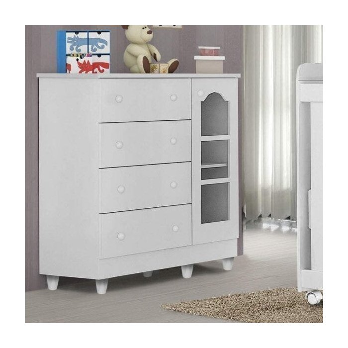 Cômoda de Bebê 4 Gavetas 1 Porta de Acrílico Portugal Móveis Bonatto Branco