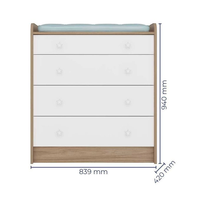 Cômoda com trocador infantil qmóveis doce sonho, 04 gavetas, na cor branca com detalhes em carvalho,100% Mdp 12 e 15mm, puxadores em polipropileno.INFORMAÇÕES Do ProdutoMarca: QmóveisModelo/Ref.: Doce sonho-25230014Estrutura: 100% MdpCor predominante: Branco/CarvalhoConteúdo da embalagem: 01cômoda – 01volume Dimensões da Cômoda: 94cm alt. x 83,9cm larg. x 42cm prof.Peso bruto: 30kg Nº de gavetas: 04 gavetas Garantia do produto: 3 meses Observação: montagem do produto não inclusaRecomendação de manutenção: Limpar com pano seco para retirar o pó. Não aplicar lustra móveis.Fotos ilustrativas