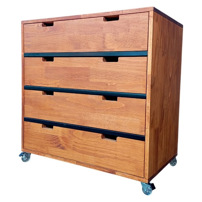 Fabricada em pinus finger com tonalidade castanheira, esta peça traz o aconchego da madeira natural com veios marcantes que garantem personalidade única a cada exemplar. As quatro amplas gavetas oferecem espaço generoso para organizar roupas, acessórios ou itens diversos, mantendo tudo ao alcance das mãos.
