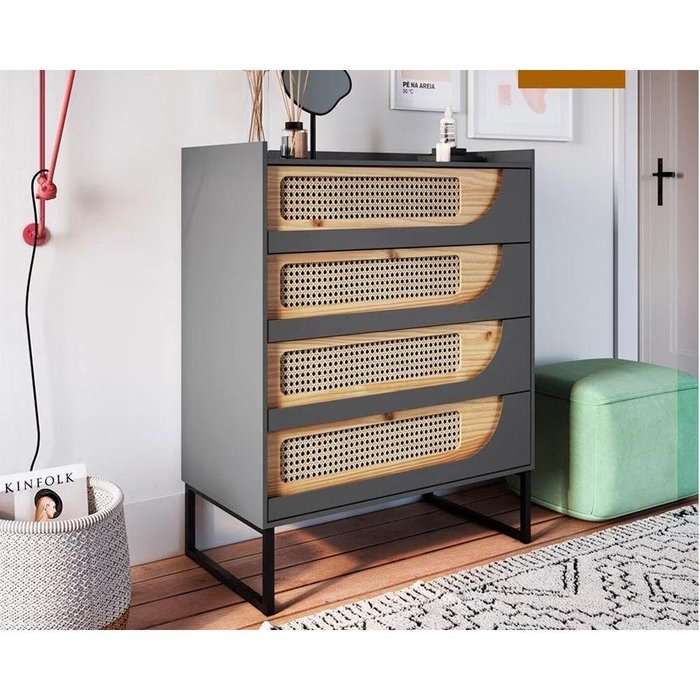 Cômoda de Quarto PH 1754 c/ 4 Gavetas Grafite/Pinus - Herval