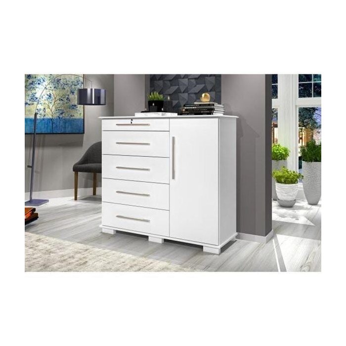 A Cômoda Detroit - J&A Móveis é ideal para proporcionar um diferencial decorativo, sem deixar de ser funcional, ao seu ambiente. Produzida em MDP/MDF com acabamento em pintura ultravioleta, possui também 5 gavetas com corrediças metálicas e uma porta com amplo espaço interno que garantem maior durabilidade, resistência e versatilidade ao móvel. Dimensões do Produto Montado: Altura: 107 cm