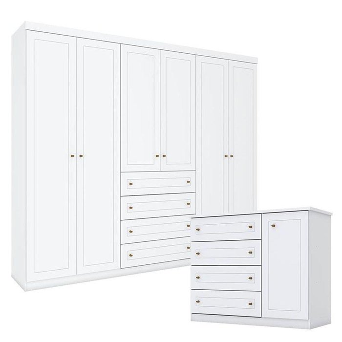 Cômoda e Guarda Roupa Casal 6 Portas Americano Branco HP – Henn