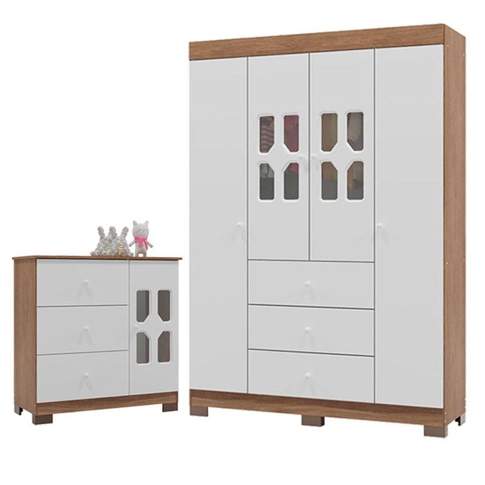 Cômoda e Guarda Roupa Infantil New Cristal Branco Carvalho - Canaã
