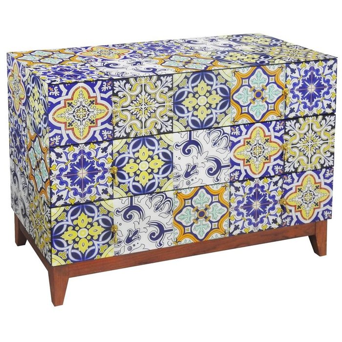 Cômoda em Madeira com Revestimento em Vidro Estampado Estampado