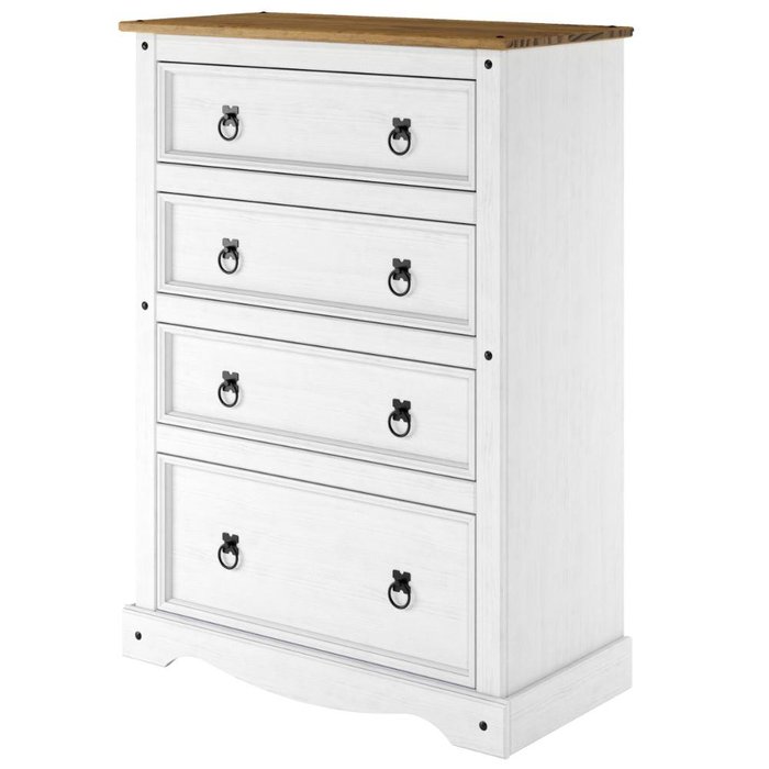 Cômoda em Madeira Maciça com 4 Gavetas Branco Lavado