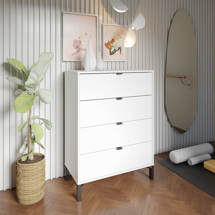 Cômoda Falkk Queens Alta 4 Gavetas Branco