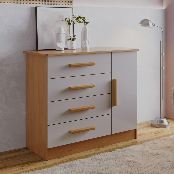 Cômoda Florença 4 Gavetas com Sapateira Off-White/Cinamomo