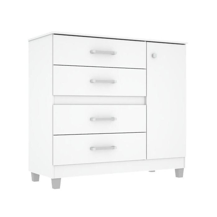 Com intuito de organizar as roupas dobradas de forma organizada, a Cômoda Florence Max ? MiraRack é a opção ideal para o seu dormitório. Com 4 gavetas e uma porta para prateleira, acomoda suas roupas e objetos com classe. Dimensões do Produto Montado: Altura: 92 cm Largura: 107 cm Profundidade: 44 cm