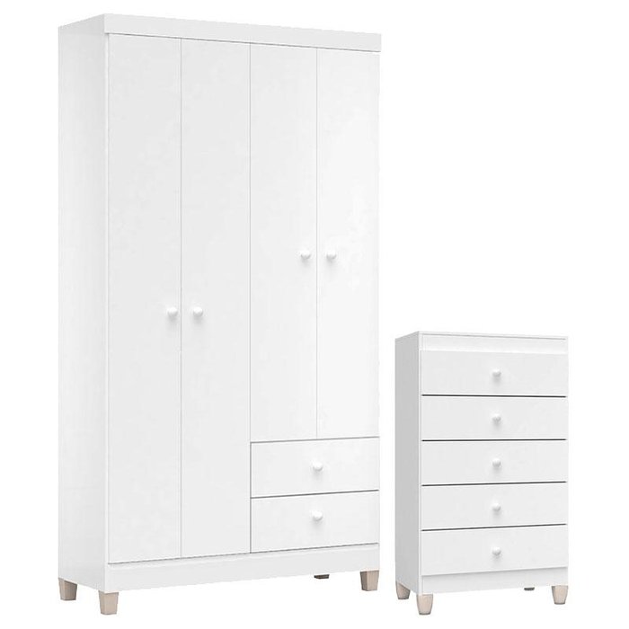 Cômoda Gaveteiro e Guarda Roupa 4 Portas Ternura Baby Branco Flex – Incorplac