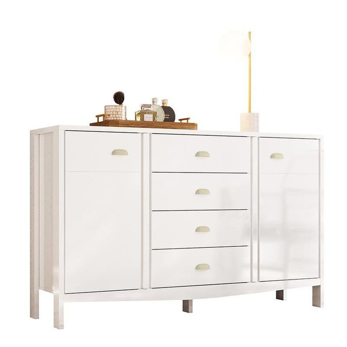 Cômoda Grande 4 Gavetas 2 Portas e Cabideiro Prisma Lukaliam Branco