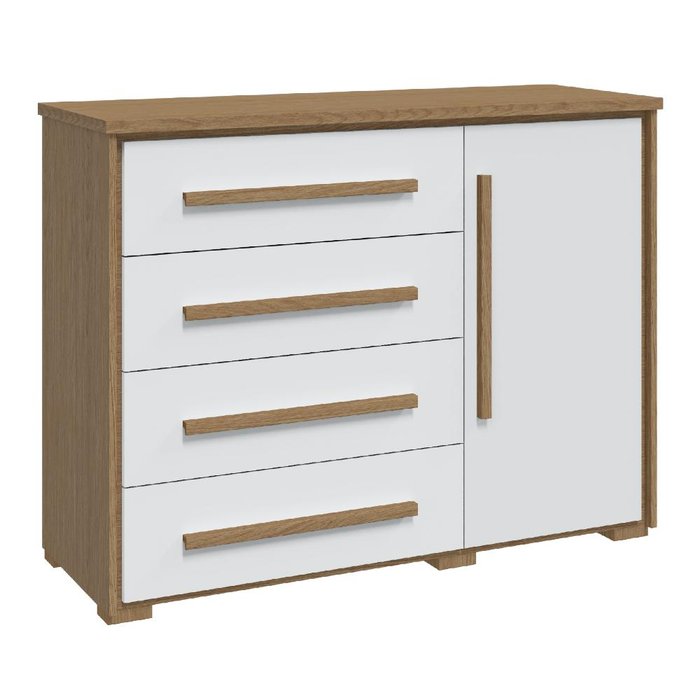 Cômoda Grande com Sapateira e 4 Gavetas Angra Rimo - Carvalho/branco Cor