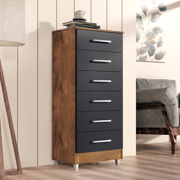 A Cômoda Helena é a escolha ideal para quem precisa de espaço de armazenamento sem abrir mão do estilo. Com 6 gavetas espaçosas, ela é perfeita para organizar roupas, acessórios, documentos e muito mais. Seu design compacto e vertical aproveita o espaço com eficiência, sendo ideal para ambientes menores.
