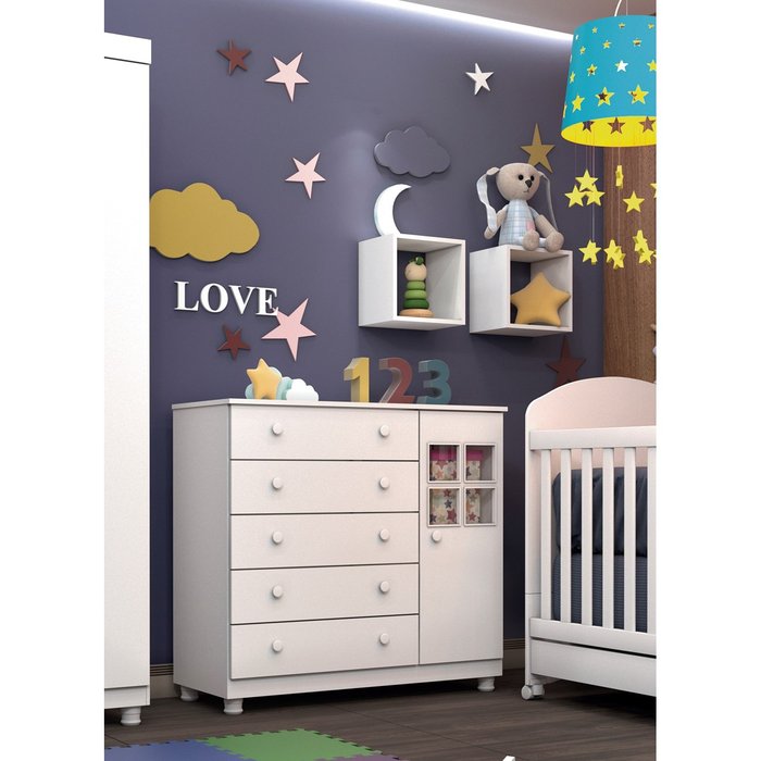 COMODA INFANTIL 01 PORTA 05 GAVETAS CAPRICHO C/ PÉS TCIL BRANCO