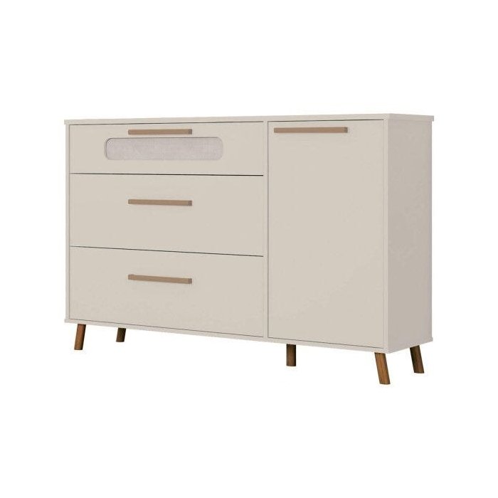 Cômoda Infantil 1 Porta 3 Gavetas Retrô Bibi Móveis Estrela Off White Acetinado