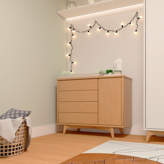 Cômoda Infantil 1 Porta 4 Gavetas Zen Nogueira